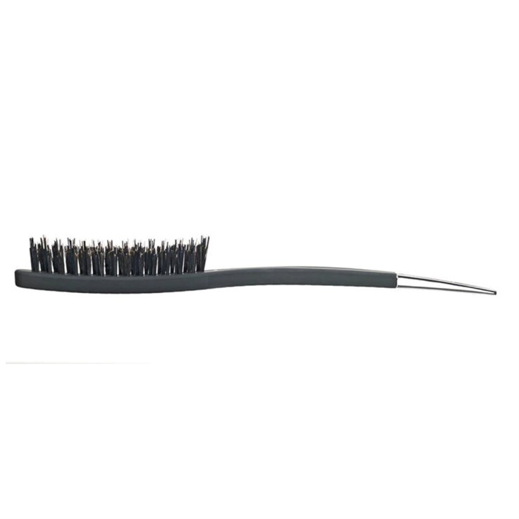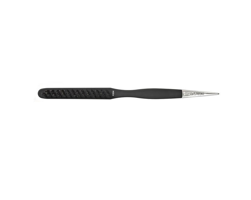 Crafted from a single piece of heat-resistant ABS, this backcomb brush offers excellent balance and control. The extended curve and tapered handle, ending in a sleek point, make it ideal for precise sectioning and effortless hair pickup. The brush head features three rows of high-quality natural boar bristles, blended with nylon for added durability and strength, providing smooth, effective backcombing.