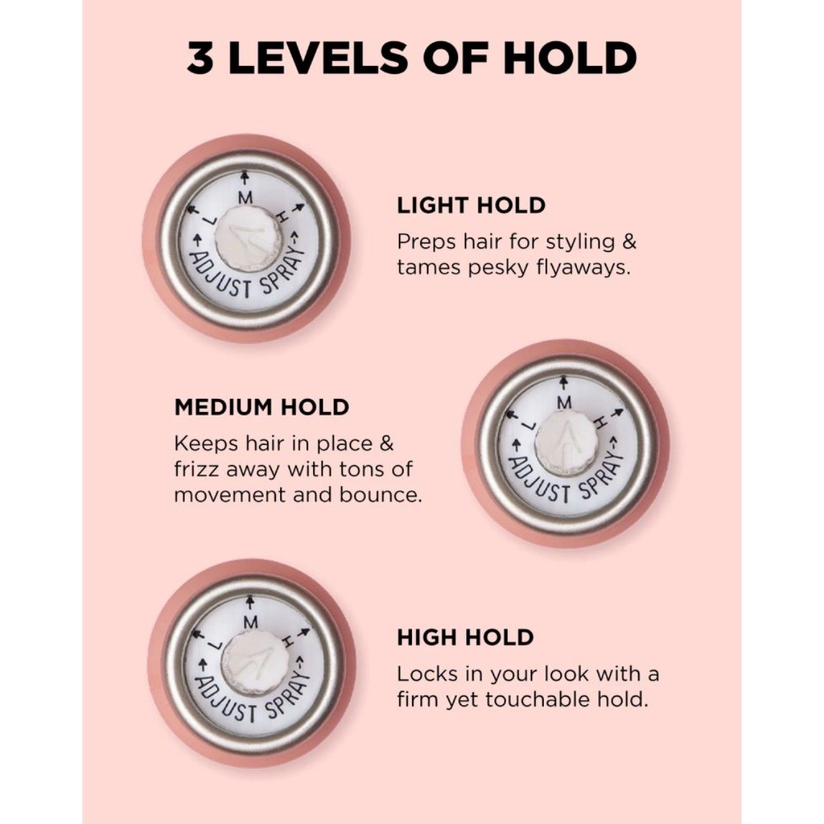 Light hold (2/10): Preps hair for styling, tames flyaways, ideal for fine hair.