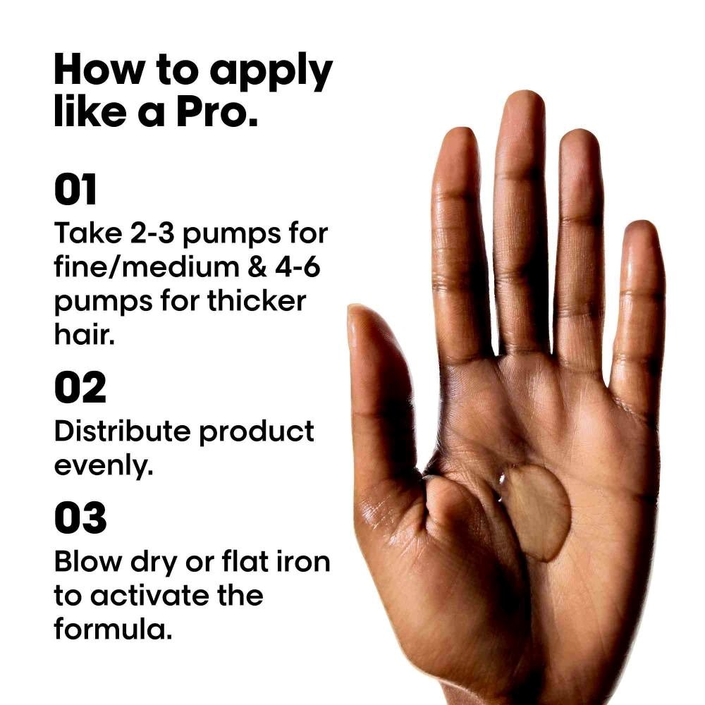 Apply a small amount to towel-dried or dry hair, focusing on mid-lengths and ends. Style as desired, using heat tools if needed. Avoid direct contact with eyes.