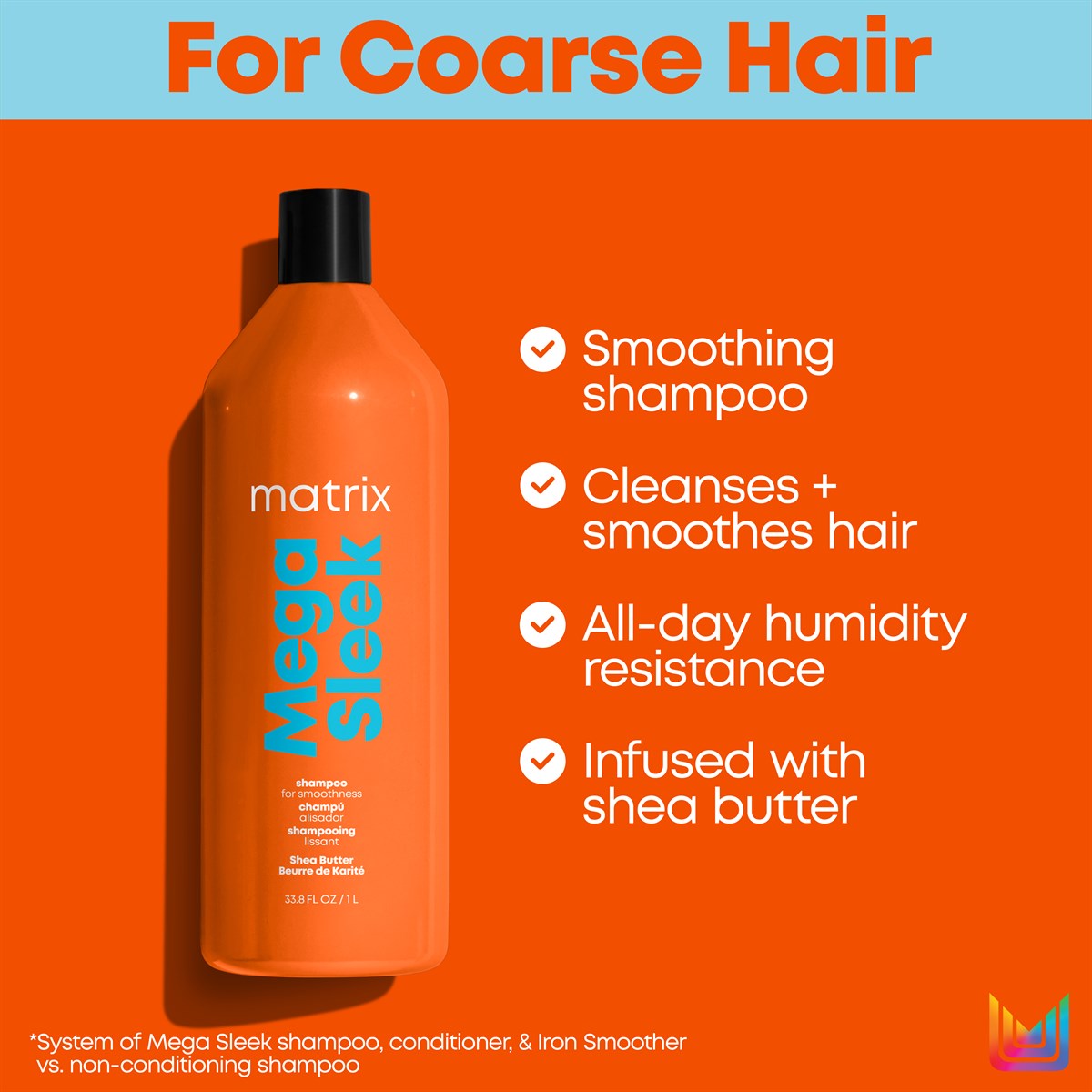 What is it?: The Matrix Mega Sleek range is a professional haircare system designed to smooth frizz, control flyaways, and deliver sleek, shiny, and manageable hair with long-lasting results.