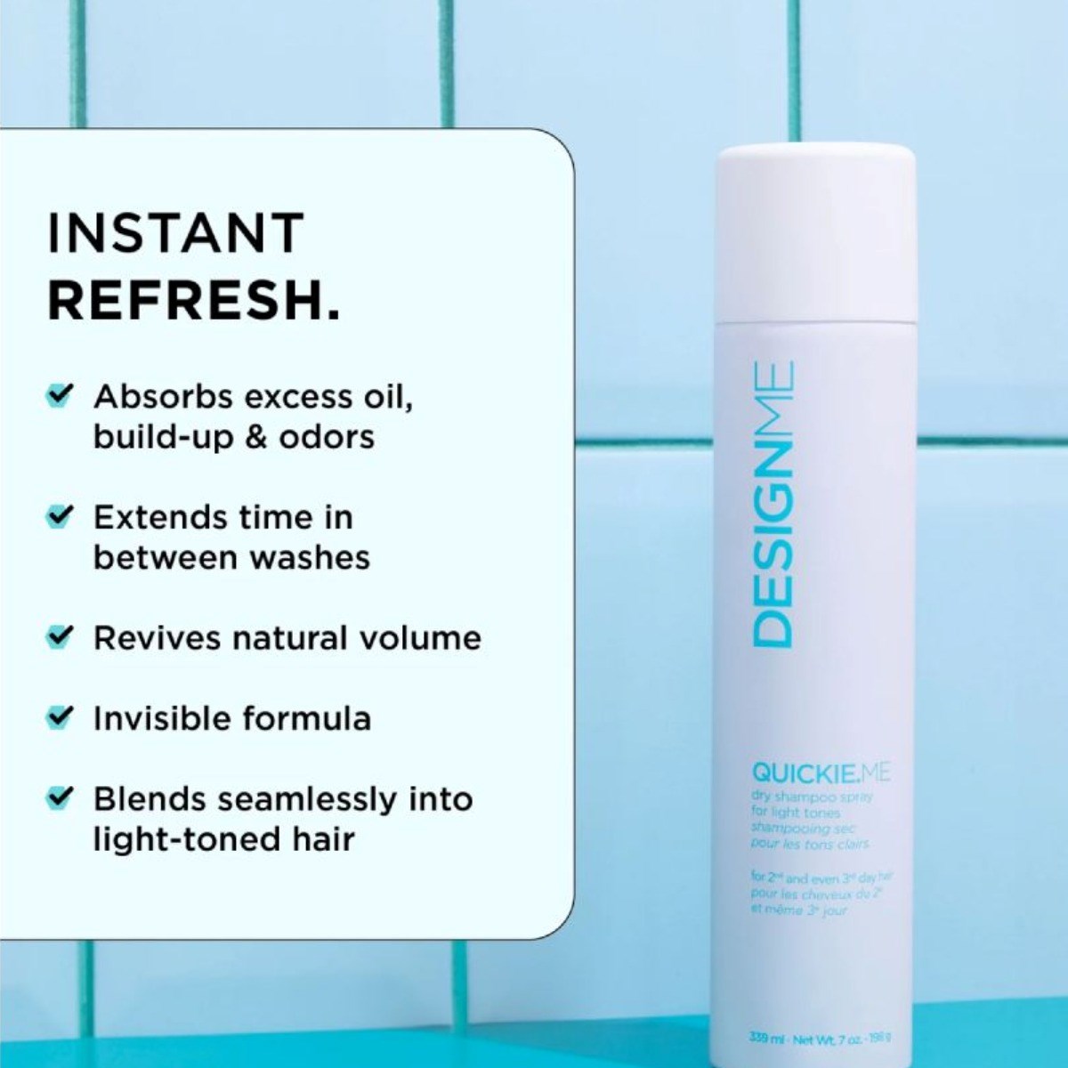 Refresh and revive your light-toned hair with Quickie.ME Dry Shampoo Spray, an invisible formula designed for blonde, platinum, grey, and white shades. Enriched with rice starch, it absorbs oil, sweat, and odors while restoring natural volume and body, giving your hair a fresh, full-bodied finish without any residue or white cast. Perfect for extending time between washes and keeping your hair looking clean and vibrant anytime.