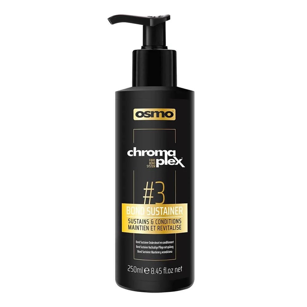 Osmo Chromaplex Bond Sustainer #3 250ml is a nourishing at-home treatment designed to maintain hair strength, shine, and suppleness. Infused with Fibre Bond Technology, it works to continue bonding hair strands after salon treatments, keeping hair strong, healthy, and full of life.