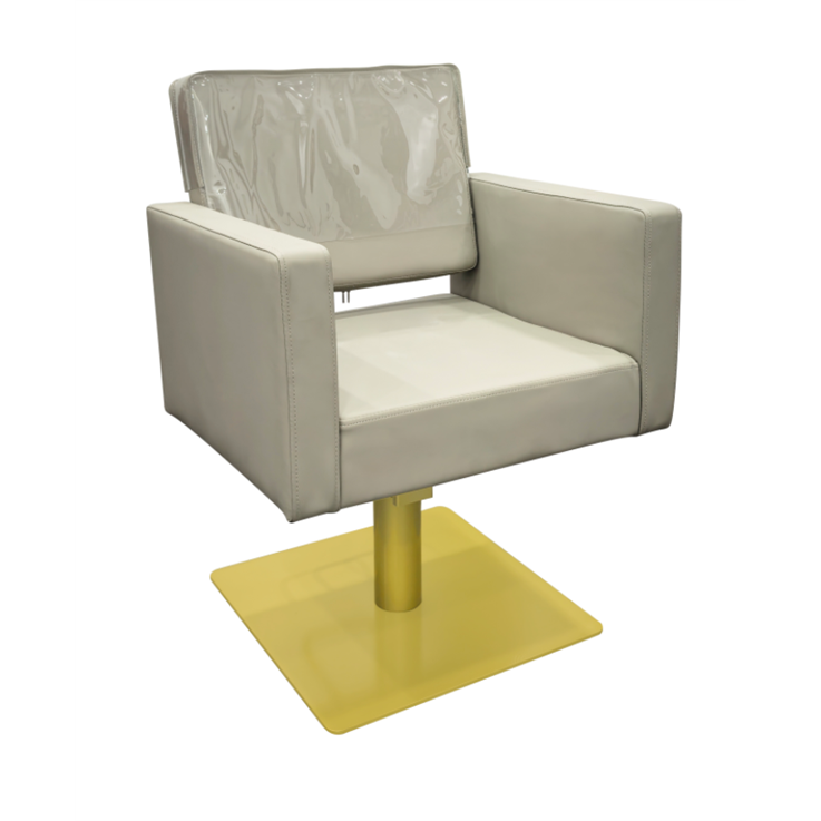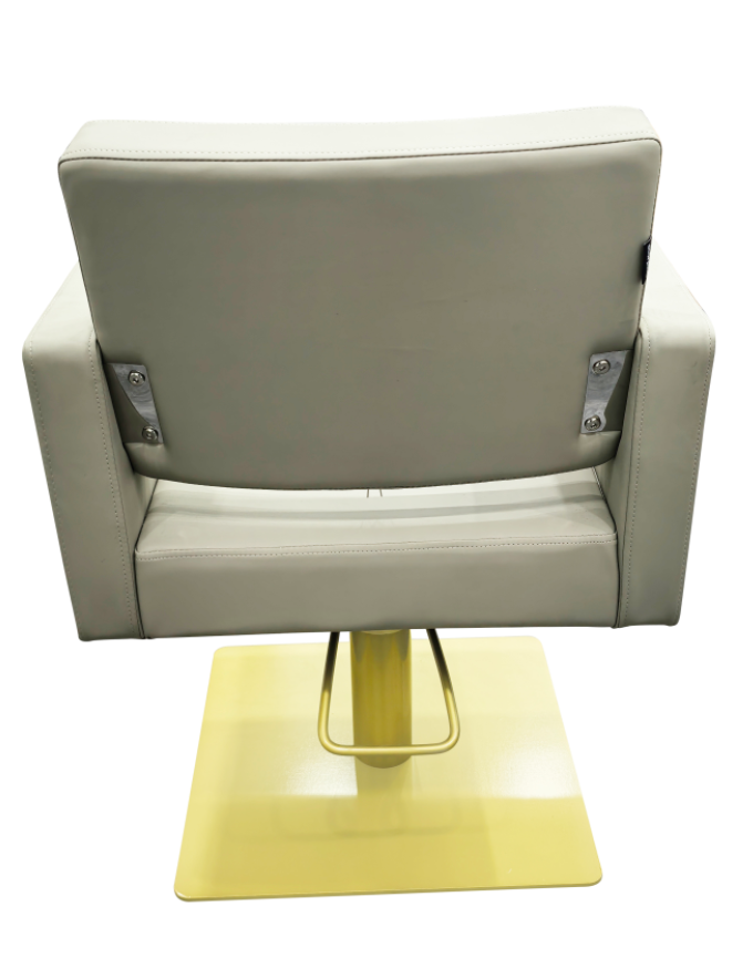 Featuring a Gold square base with a lockable hydraulic pump, this chair combines style with functionality. Upholstered in smooth Mushroom fabric, the Larvik Styling Chair is both durable and comfortable, making it an excellent choice for busy salon environments.