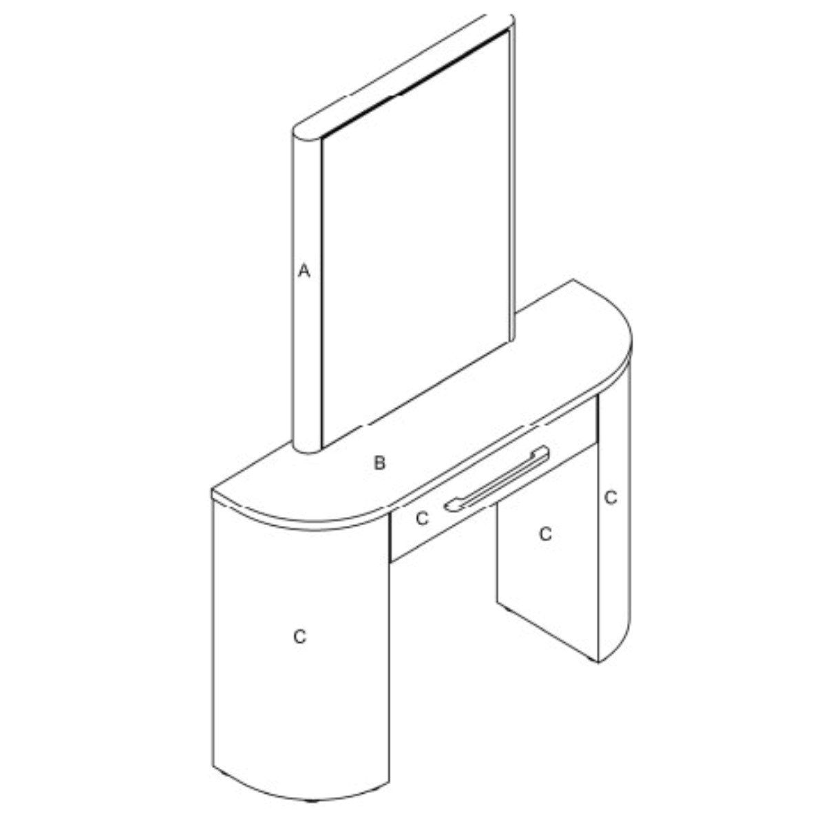 Modern curved styling and makeup unit for contemporary salons