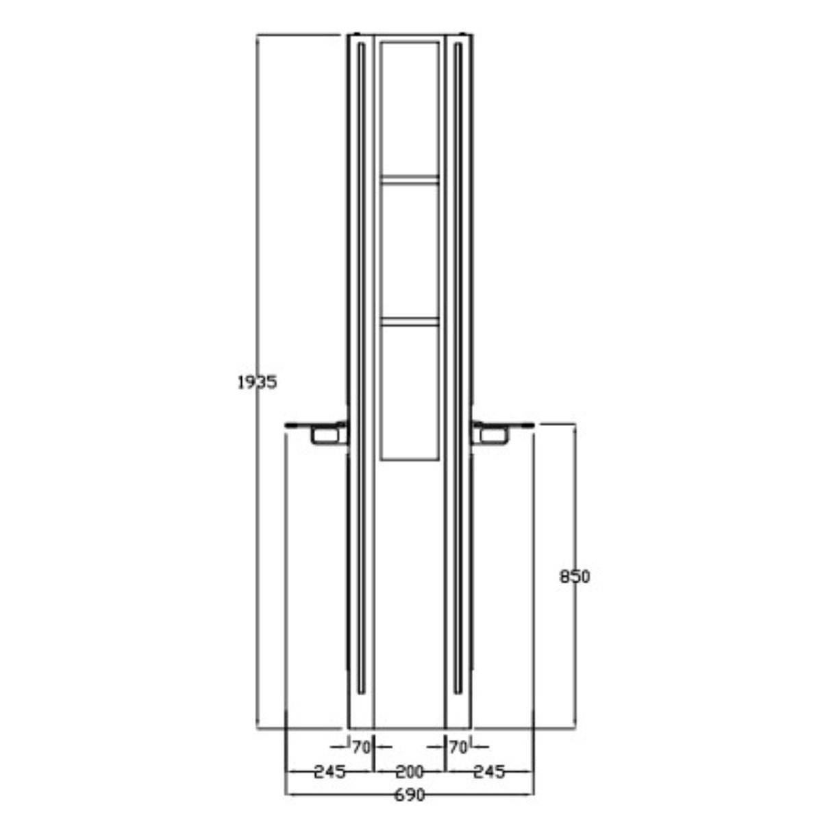 Refined floor-length wall-mounted styling unit with a modern design