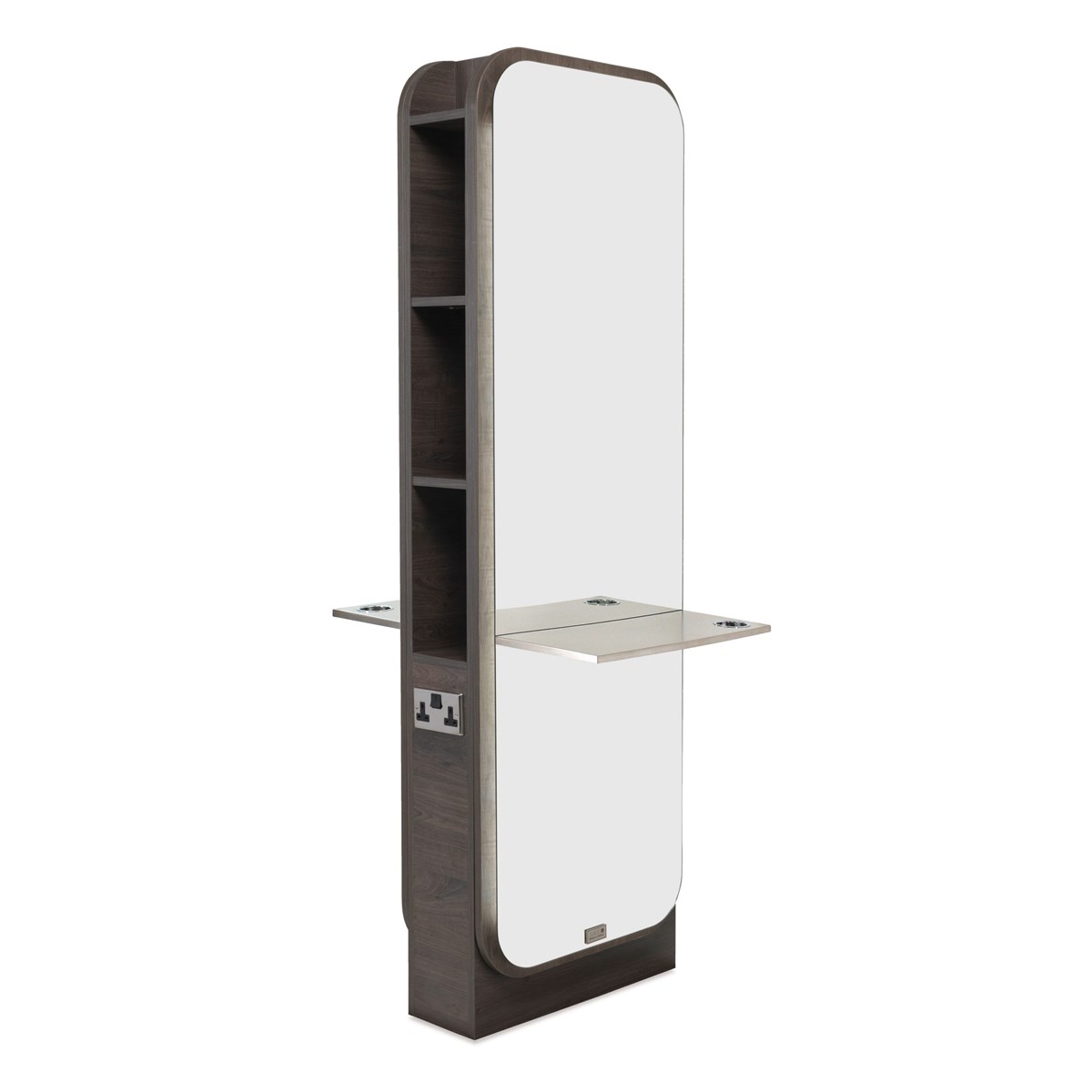 The REM Oracle Island Styling Unit combines simplicity and modern functionality, delivering a warm and timeless look for any salon. Featuring back-lit LED lighting, a laminated styling shelf, and an integral dryer holster, this island unit offers a practical and stylish workspace for professional stylists. Customisable with 20 laminate options and optional extras such as a frosted lower mirror panel or freestanding footrest, the Oracle unit enhances both style and convenience in your salon.