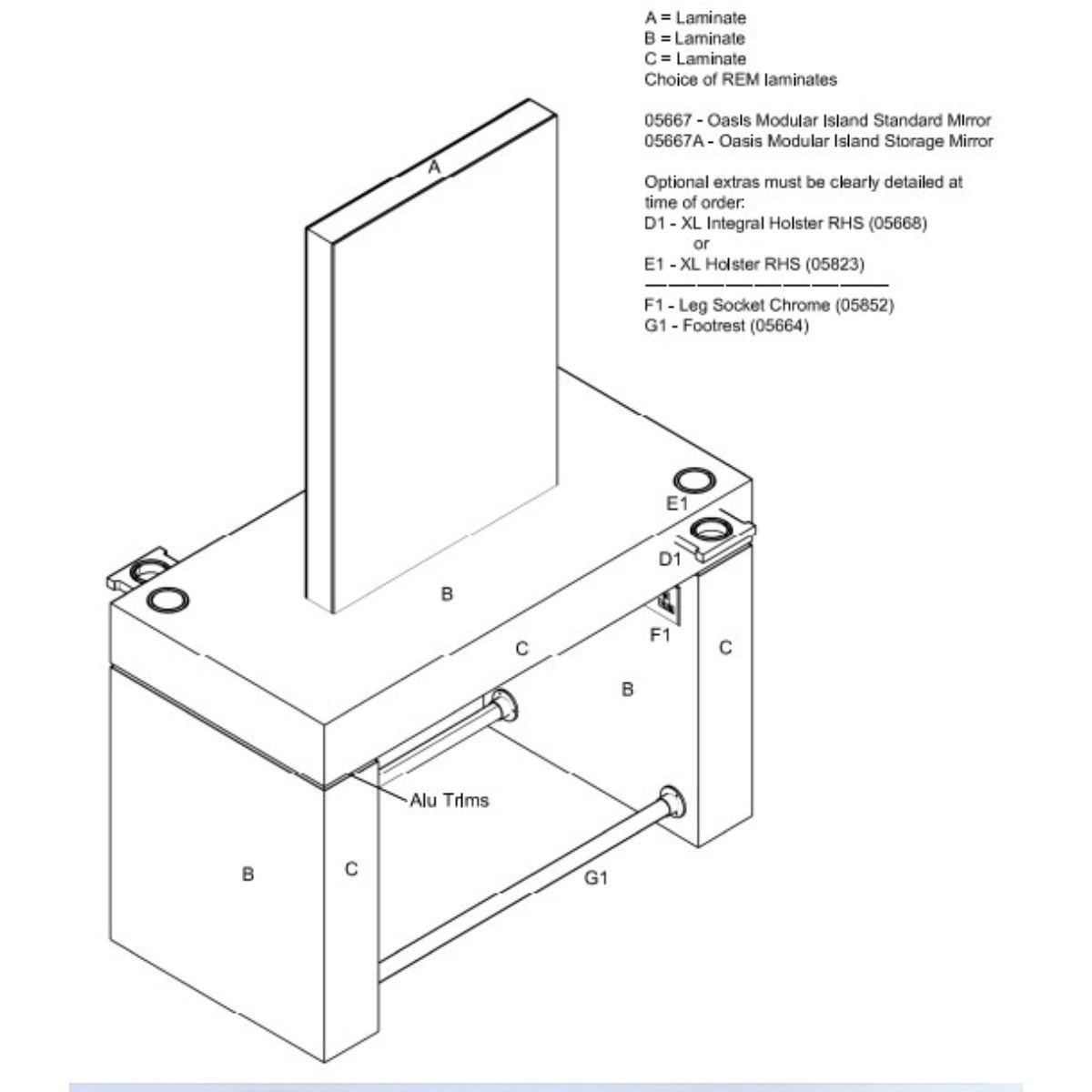 A sleek, practical choice for salons wanting style and functionality in one compact design. This REM styling unit includes full storage mirrors, giving professionals easy access to tools while maintaining a clean, streamlined workspace. Its chrome detailing and wide choice of laminates make it easy to tailor to any salon interior.