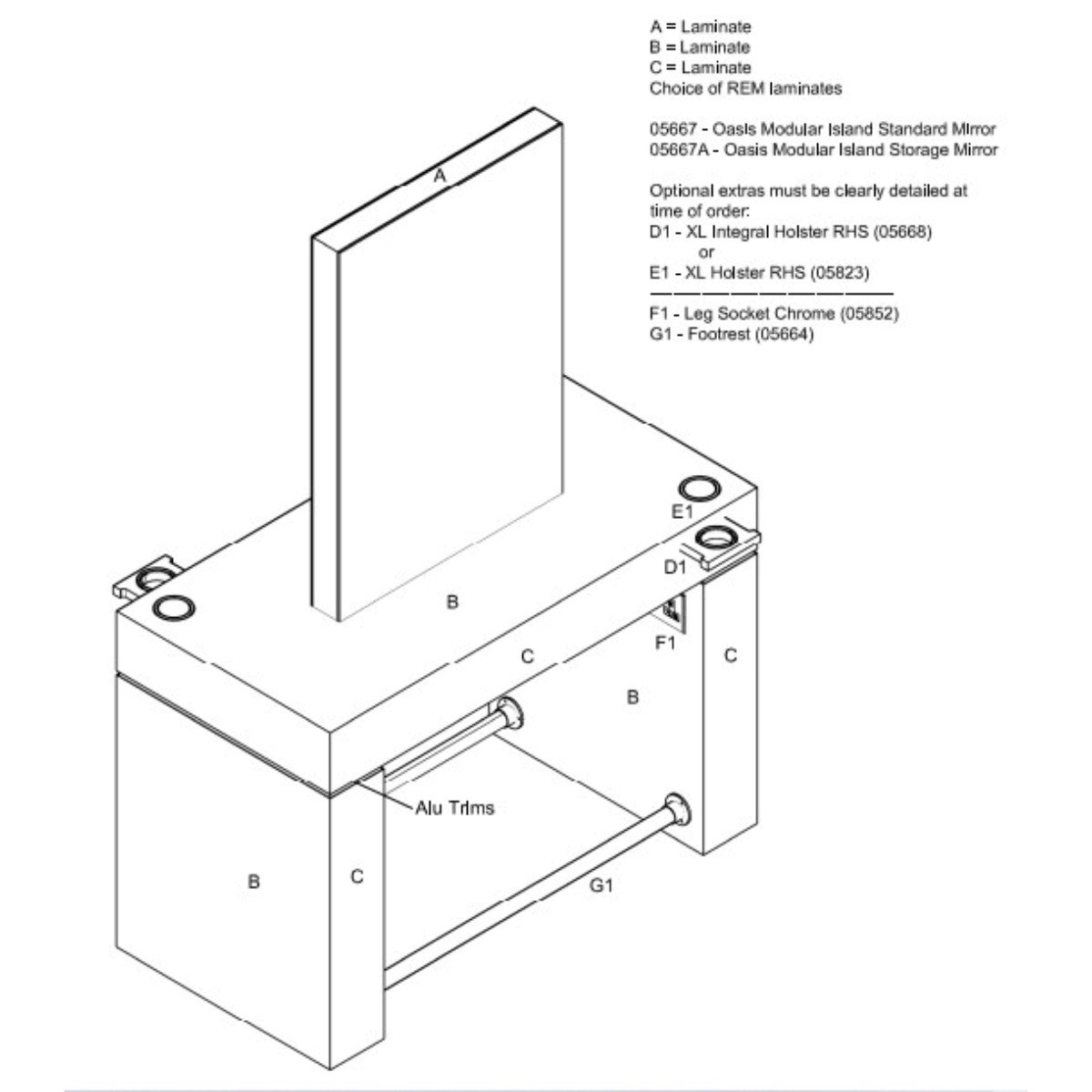The REM Oasis Two Position Island Styling Unit brings a clean, contemporary presence to your salon while offering excellent value. Its refined chrome detailing and generously sized rectangular mirrors create a polished, professional look that suits a wide range of interiors. With custom laminate options and optional added functionality, it’s designed to adapt effortlessly to your salon’s workflow and style.