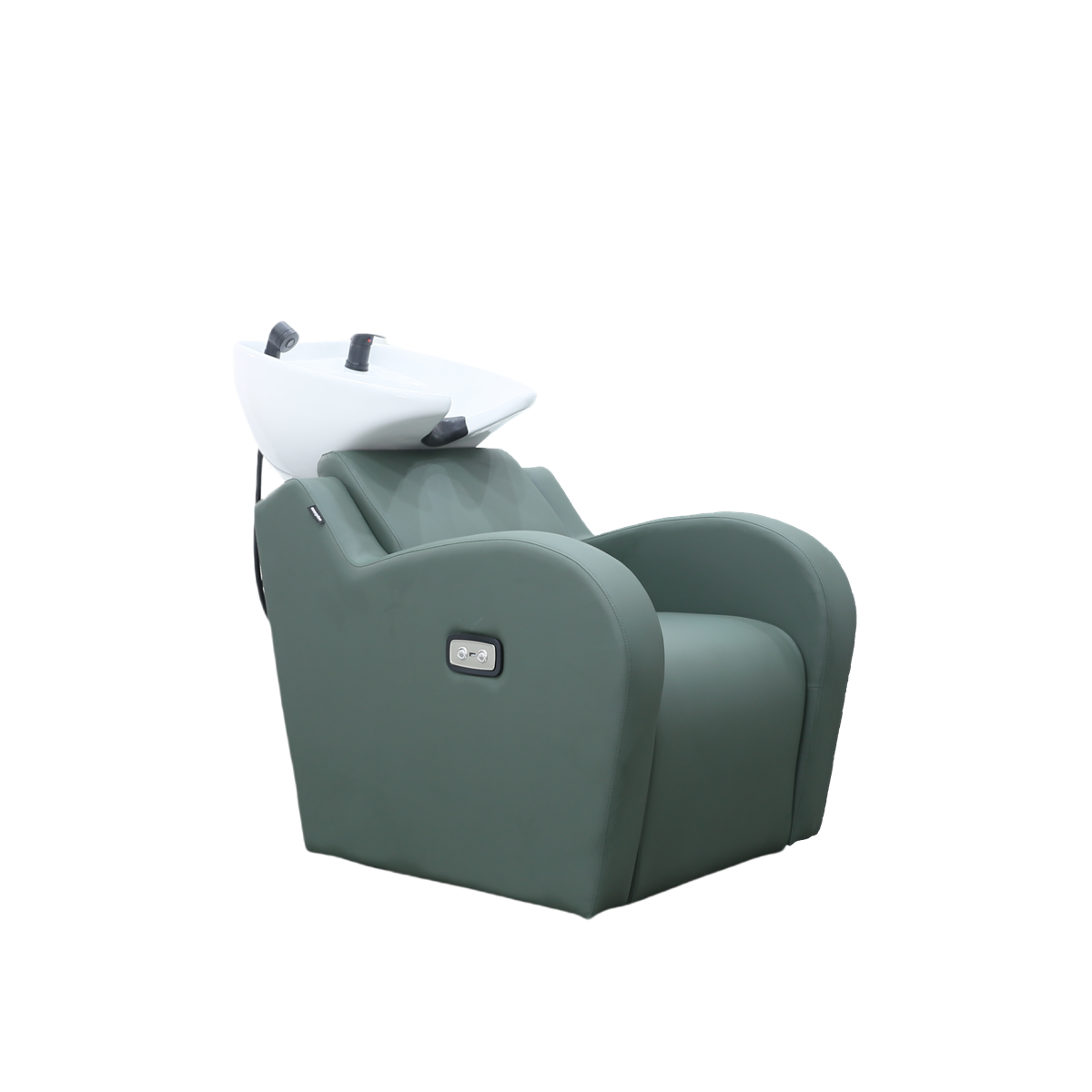 Introducing the new Hamar Electric Washunit, is a stunning comfortable backwash with a modern design. Crafted in a soft faux leather fabric, this backwash features electric footrest and USB Charging point. This is our most luxurious washunit it offers both style and functionality for professionals, Comes complete with a Black mixer valve and showerhead. Available with White or Black Basin. Free Covers. Available in Black or Caramel Brown and Green