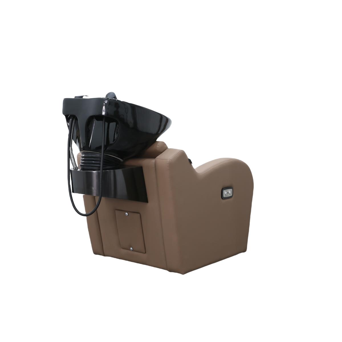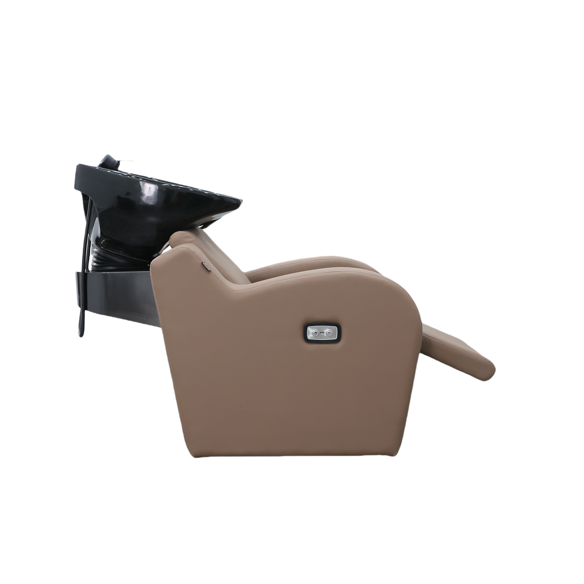 Introducing the new Hamar Electric Washunit, is a stunning comfortable backwash with a modern design. Crafted in a soft faux leather fabric, this backwash features electric footrest and USB Charging point. This is our most luxurious washunit it offers both style and functionality for professionals, Comes complete with a Black mixer valve and showerhead. Available with White or Black Basin. Free Covers. Available in Black or Caramel Brown.