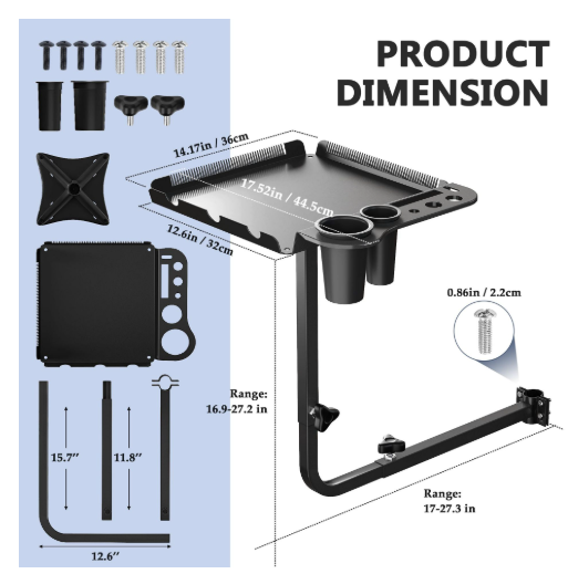 An adjustable, swivelling arm which fits to almost all salon chairs that is always right where you need it. The two adjustment bolts for height and length allow you to position the tray where you need it to suit your posture reducing fatigue and enhancing comfort.