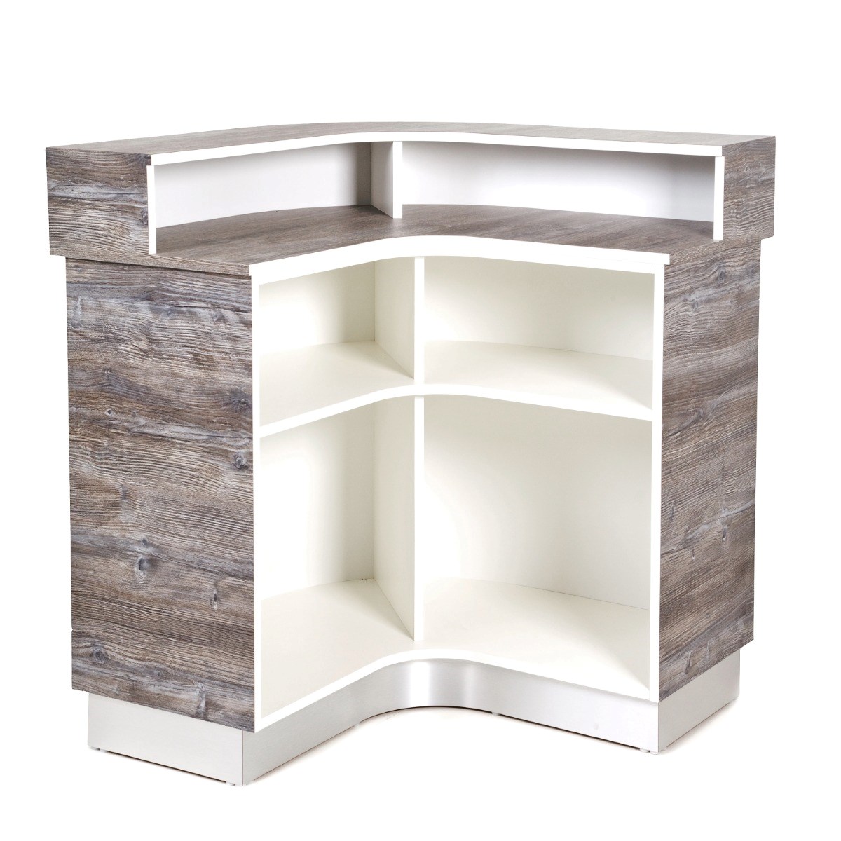 The Monaco reception desk offers a versatile and stylish design, easily adaptable to fit any salon’s size or layout. It features sectioned shelf storage for practical organisation.