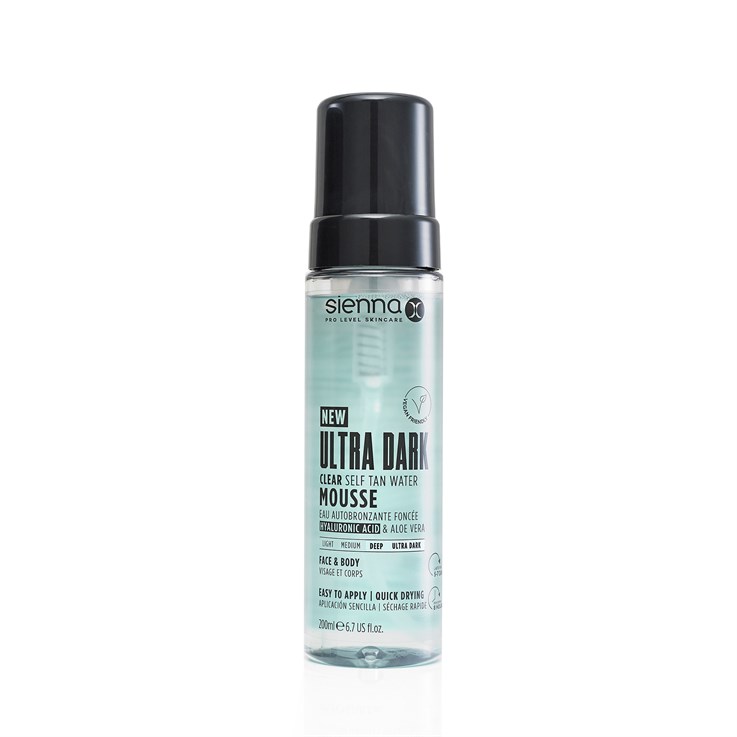 Sienna X Ultra Dark Clear Self Tan Water Mousse 200ml develops into a deep, natural-looking tan that enhances your skin tone without appearing orange or uneven. The lightweight formula creates an even, streak-free glow with just one application.