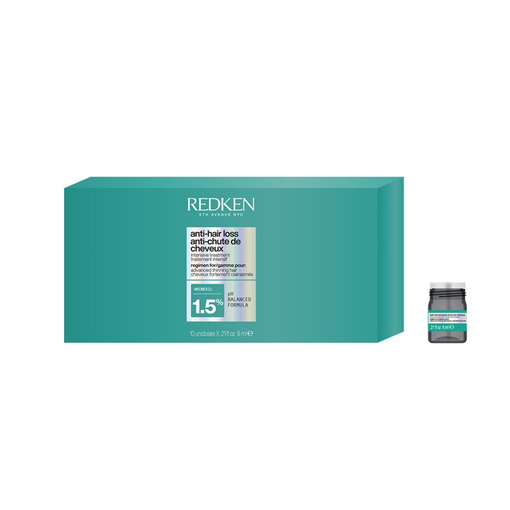 Redken Acidic Grow Full System Intensive Treatment is a targeted leave-in ampoule treatment designed for hair experiencing thinning and loss of density. This professional-strength formula works directly at the roots to support existing hair thickness while helping slow the rate of hair loss for a fuller-looking result. With a lightweight, fast-absorbing texture, it nourishes the scalp and strengthens hair from root to tip without weighing it down.