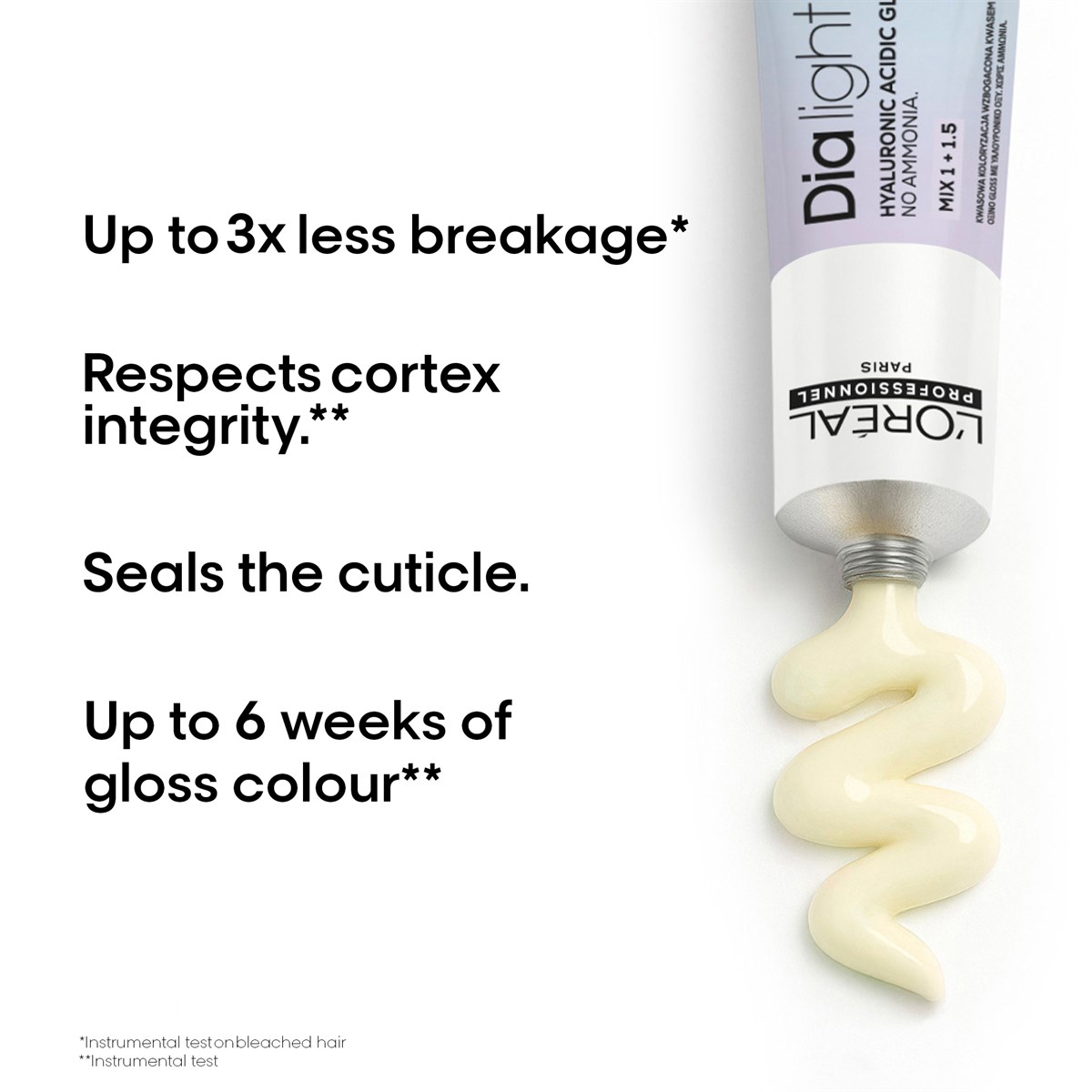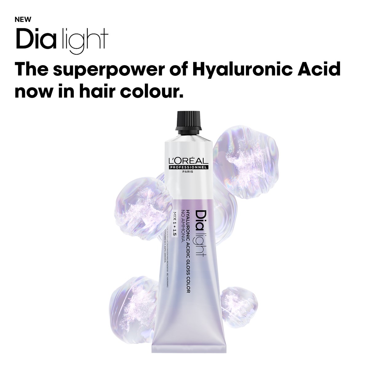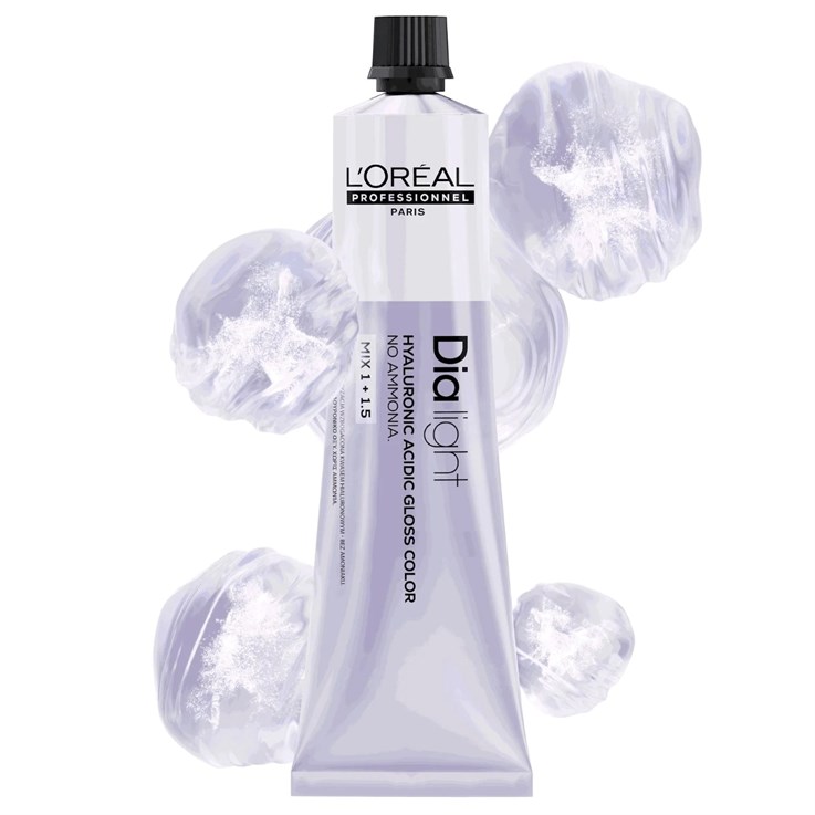 L’Oréal Professionnel Dia Light Semi-Permanent Hair Colour is an advanced acidic gloss colour, powered by a 1% Hyaluronic Acid Complex to deliver intense hydration, shine, and improved hair quality. Specially developed for sensitised, bleached, or colour-treated hair, this ammonia-free formula helps restore moisture while enhancing tone and luminosity. Perfect for glossing, toning, or refreshing lengths, Dia Light supports healthier-looking hair with visibly radiant results.