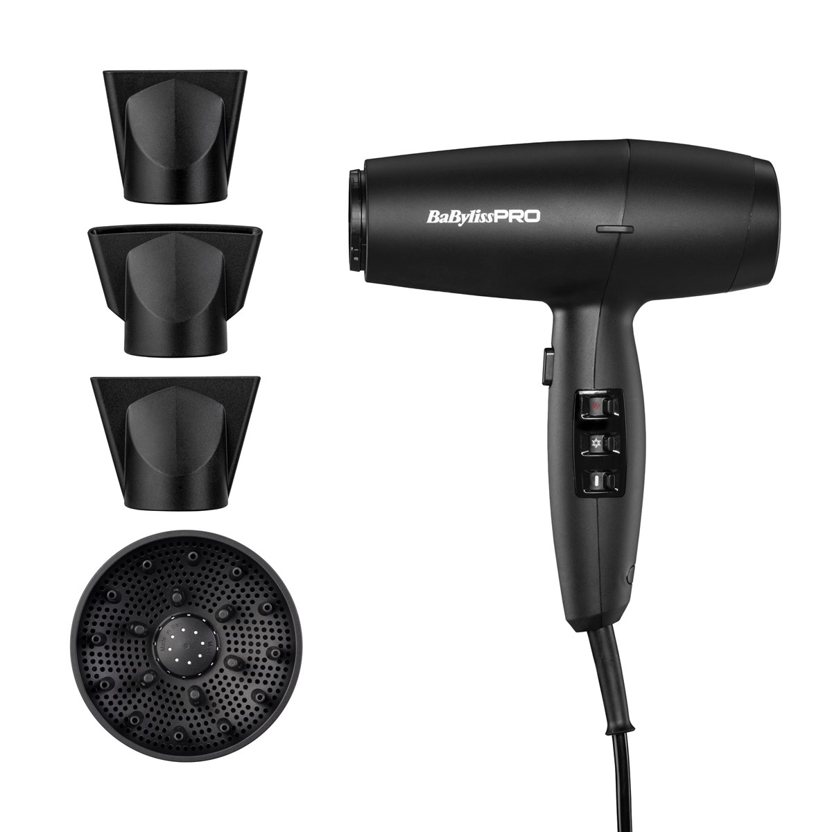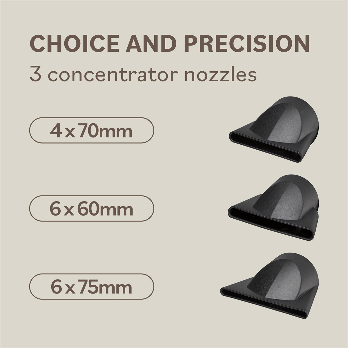- Includes 3 precision concentrator nozzles for styling control