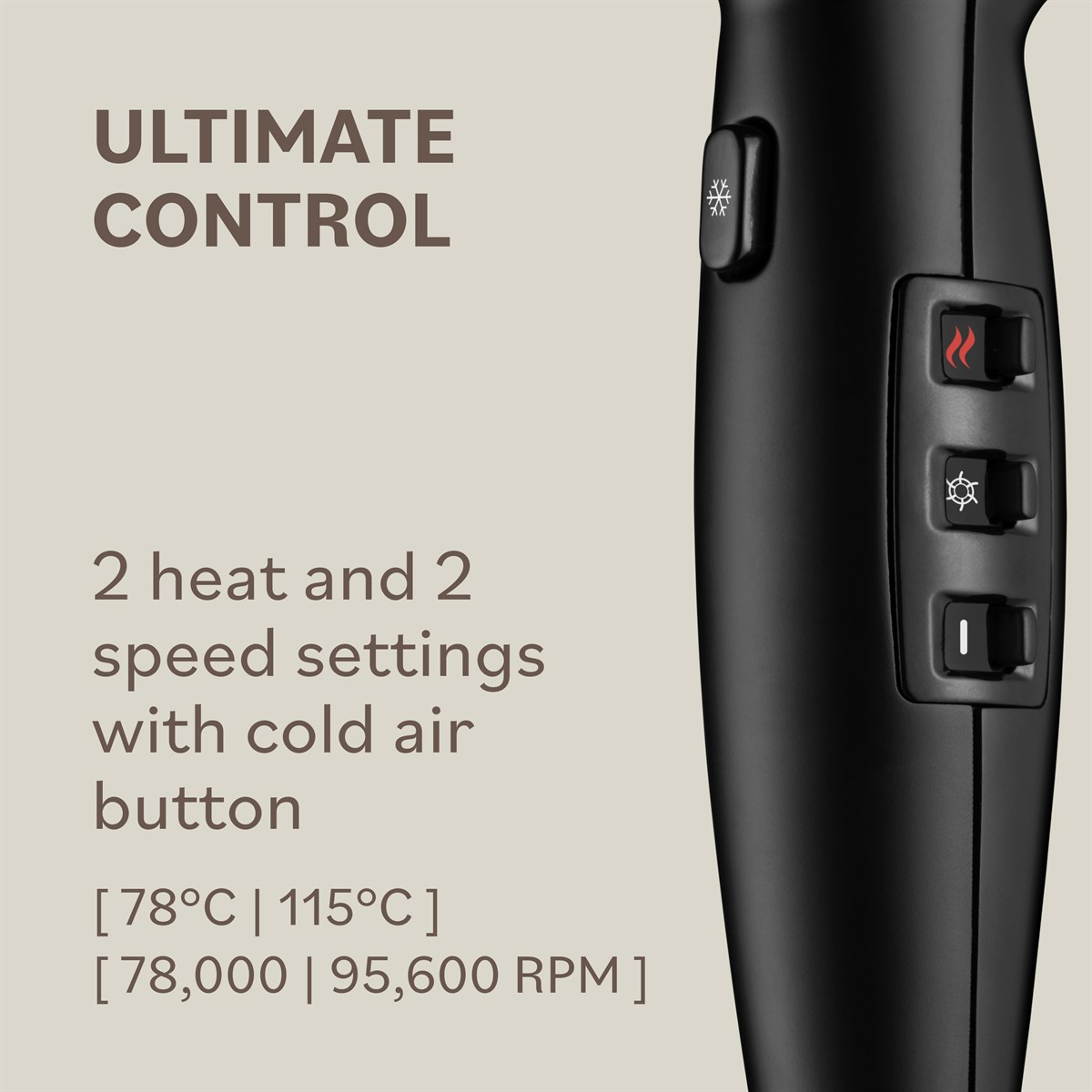 - 2 speed settings (78,000 | 95,000 RPM) for tailored airflow