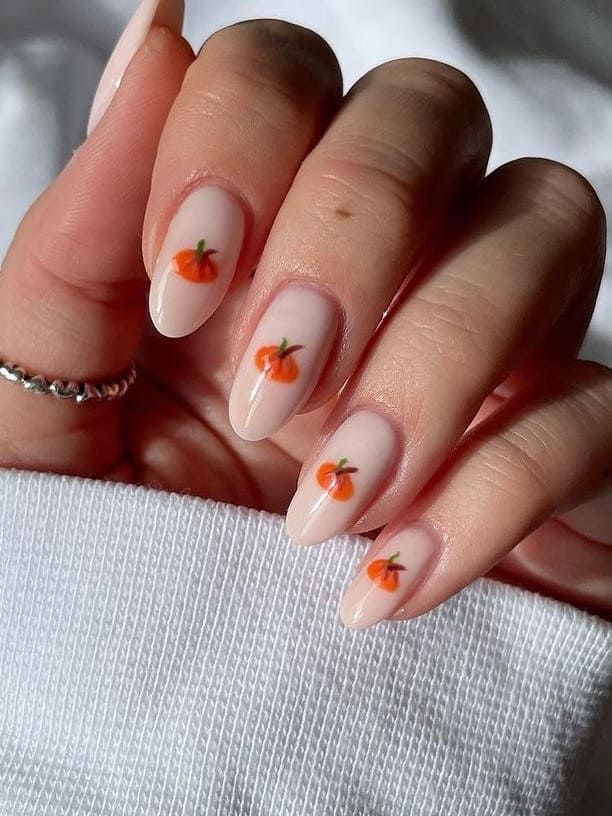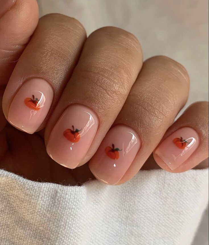 For clients who want a nod to the season without going full-on spooky vibes, the Minimalist Pumpkin design is the perfect touch. Starting with a neutral, nude base, these tiny pumpkin designs add a simple yet elegant touch of Halloween without the over-the-top detail.
