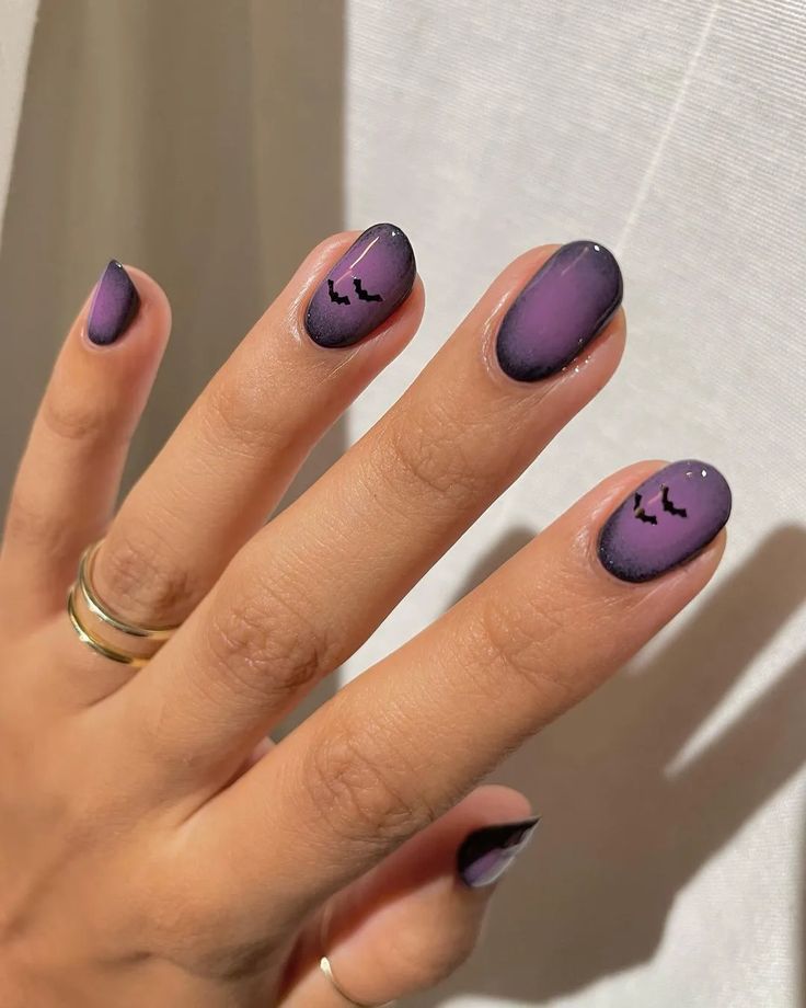 Purple is *the* shade of the season, from deep amethyst tones to milky lilacs. It’s moody yet girly, enough to fit any client's style. Combine it with a chrome finish, spider web & bat details, or an ombre fade for that haunting look.