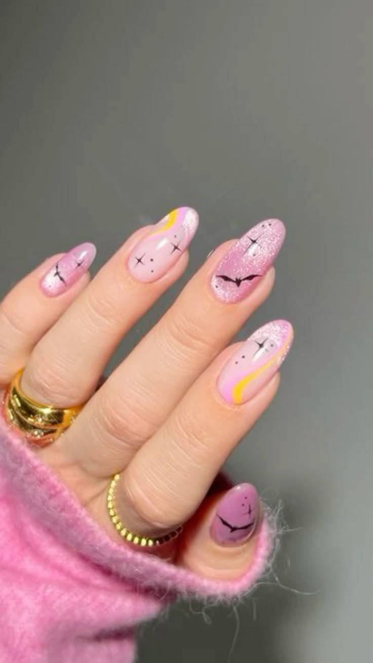 Sometimes less is more, and these minimal Halloween motifs prove it! Think fine line bats, small ghost elements, and spiderwebs on a sheer base. It’s super chic, wearable, and perfect for clients who want something seasonal yet sophisticated.