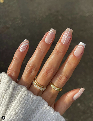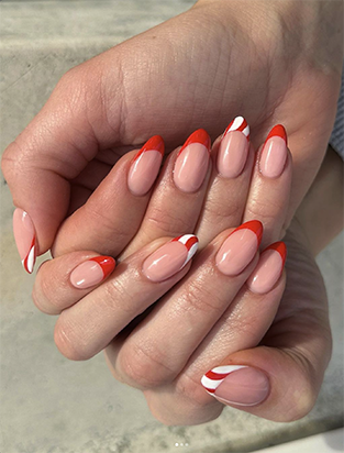 A festive French manicure is the perfect way to switch up your client's regular go-to mani. Take a trip down Candy Cane Lane with these super fun & festive designs to make your nails pop and feel Christmas-inspired.