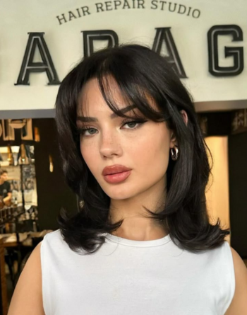 Big hair is back, and we have Sabrina Carpenter to thank for that. Inspired by her Short N’ Sweet tour looks, this cut channels her infamous layers and bangs, but with a whole lot more volume and dimension. The key to this cut is a 90-degree shape when framing the layers, to give as much volume as possible, as well as a thick curtain fringe that skims (or even covers) the eyes. Pairing this cut with a bouncy blowdry or big, tight curls for maximum drama, it’s super glam, playful, and gives a whole lot of diva!