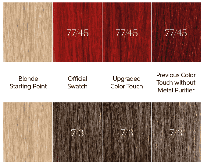 So, what’s new? Color Touch is now vegan with a built-in Metal Purifier for true-to-tone vibrancy no matter the hair condition. Metals present on the hair prevent accurate colour formation leading to unpredictable or uneven colour results. Built-in Metal Purifier encapsulates metals on hair, ensuring precise colour. The result is true-to-tone no matter the condition.