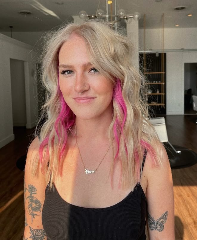 The playful peekaboo highlight trend is back, but this time with a twist. These highlights are all about placing hidden pops of colour beneath the top layers of the hair, offering your clients the chance to play around with any colour. Think pastel pink, electric blues, or soft purples to add some fun to the finished look!