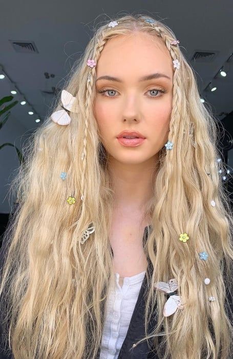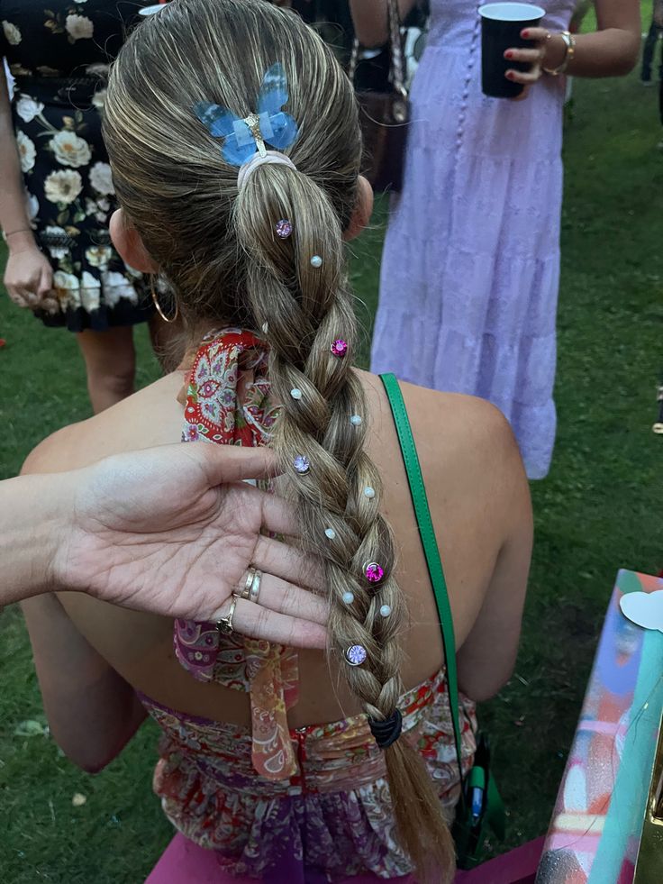 For a subtle yet stylish touch, incorporate baby braids into your festival hairstyle, again keeping hair out of the face with an added glamorous style to the look. We love the added butterfly clips and gems that give the hairstyle a touch of magic!