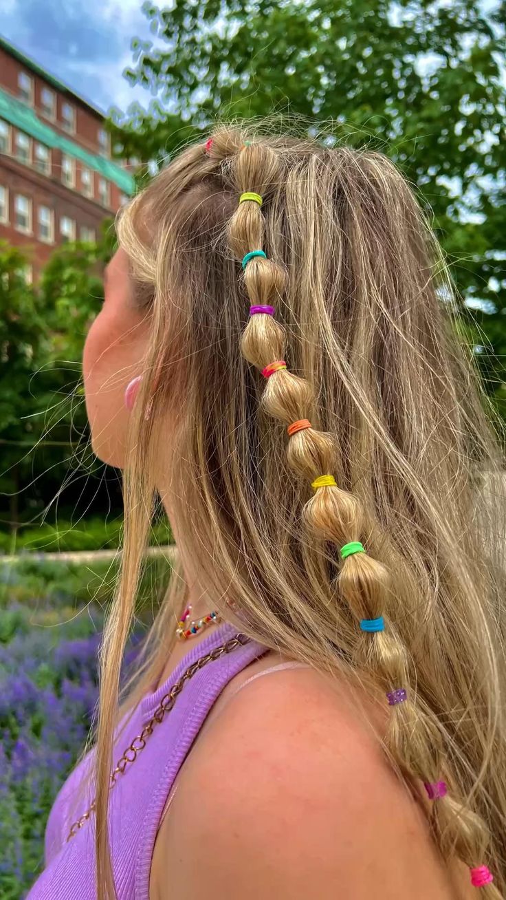 With the bubble braid already being a big hit this year, we are obsessed with the baby bubble braids that are taking centre stage for this year's festival season. Adding colourful bands at regular intervals between the sections of hair creates that bubble effect, adding instant volume and dimension to any hair-do.