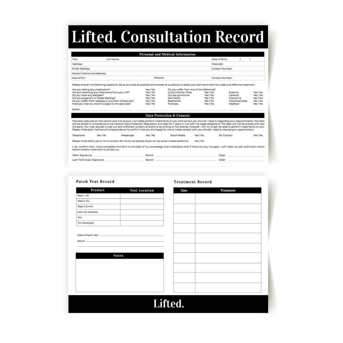 LashBase Lifted. Client Record and Consultation Cards