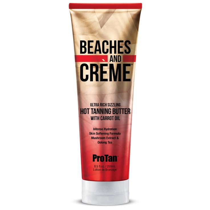 Achieve an intense, radiant glow with Pro Tan Beaches & Crème Sizzling Butter, an ultra-rich hot tanning butter designed to nourish skin while accelerating tanning results. This creamy formula deeply moisturises as it enhances colour development, leaving skin soft, smooth and visibly luminous. Ideal for experienced tanners, it delivers red-hot results with a conditioning, luxurious feel.