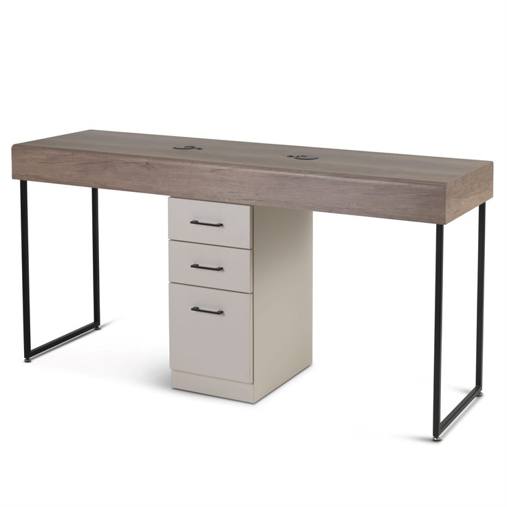 The Florence Nail Desk offers a modern, contemporary design ideal for professional nail salons. Featuring a contoured acetone-resistant work surface, black steel legs with adjustable feet, and ample storage, this two-position unit keeps your salon organised and efficient. The storage cupboard includes two top drawers and a lower cupboard, providing plenty of space for tools and equipment. Fully customisable, the Florence Nail Bar is available in any laminate from the REM swatch to match your salon style.