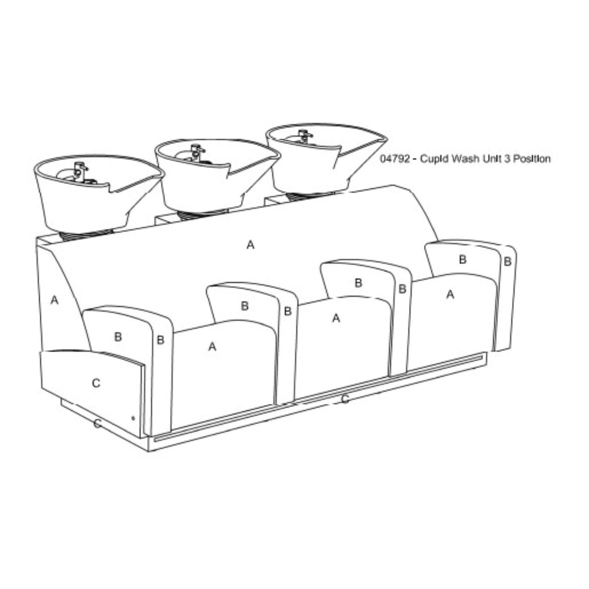 The REM Cupid Wash Unit – 3 Position combines modern design with luxurious functionality, offering a stylish and comfortable solution for salons. Its sofa-style seating features a mix of upholstered and laminated sections, fully customisable from a wide range of fabrics and laminates. With two tilting white Kiko ceramic basins, integrated taps, mood-enhancing LED plinth lighting, and optional extras, this unit delivers an exceptional washing experience for clients.