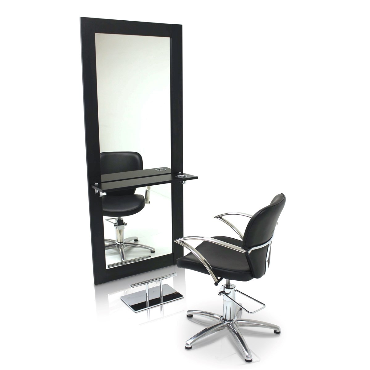 The REM Paris Wall Styling Unit in black brings elegance and modern sophistication to any salon. Its generous 4 mm thick mirror and laminated shelf with integrated chrome holster provide both style and practicality, offering a convenient space to store tools and equipment. Designed for easy installation, this striking wall unit can also be customised with optional extras to suit your salon’s needs.