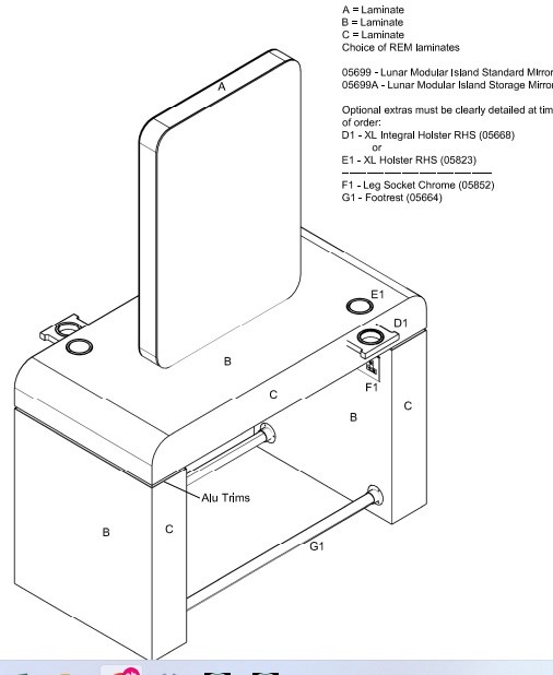 Designed for versatility, the Lunar unit can be upgraded with optional features such as chrome or pop-out holsters, footrests, and twin electrical sockets with USB ports. The mirror can also be fitted with storage options, keeping tools and products conveniently close at hand.