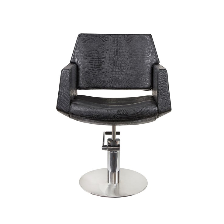 From the distinguished Iguana Collection, the Iguana Royal Styling Chair offers both style and comfort. It features a chrome disc base and a lockable hydraulic pump for ease of use and stability.